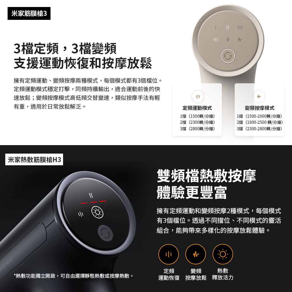 ⚠️熱敷功能僅【米家熱敷筋膜槍 H3】具備,請依據自身需求選購