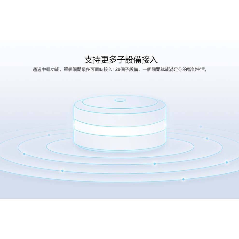‧通過中繼功能,單個網關最多可同時接入128個子設備,一個網關就能滿足你的智能生活。