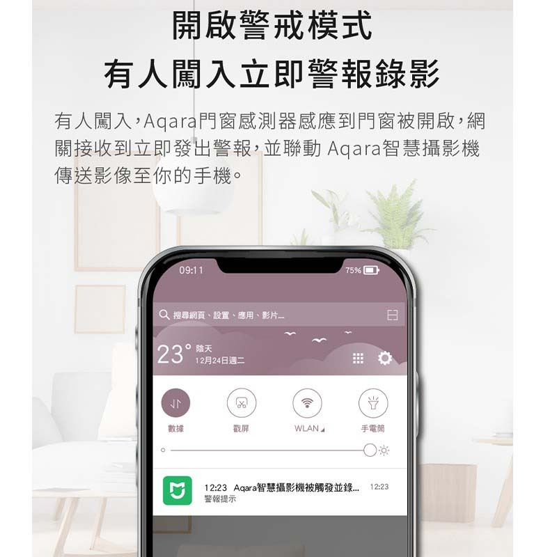 ✨開啟警戒模式後,有人闖入立即通報,搭配攝影機還可以拍影片傳到手機
