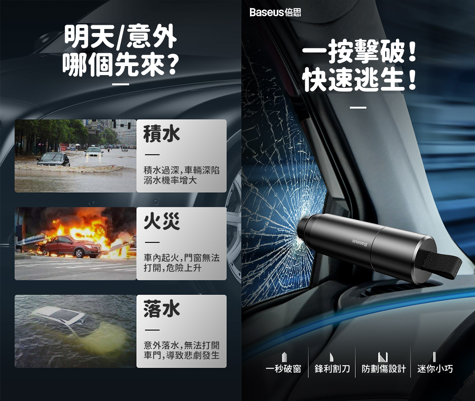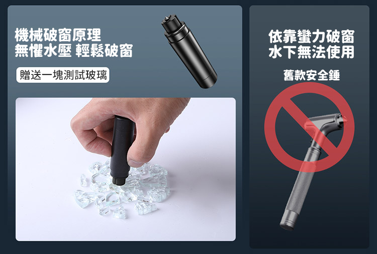 ⚠舊款安全錘依靠蠻力破窗,水下無法使用