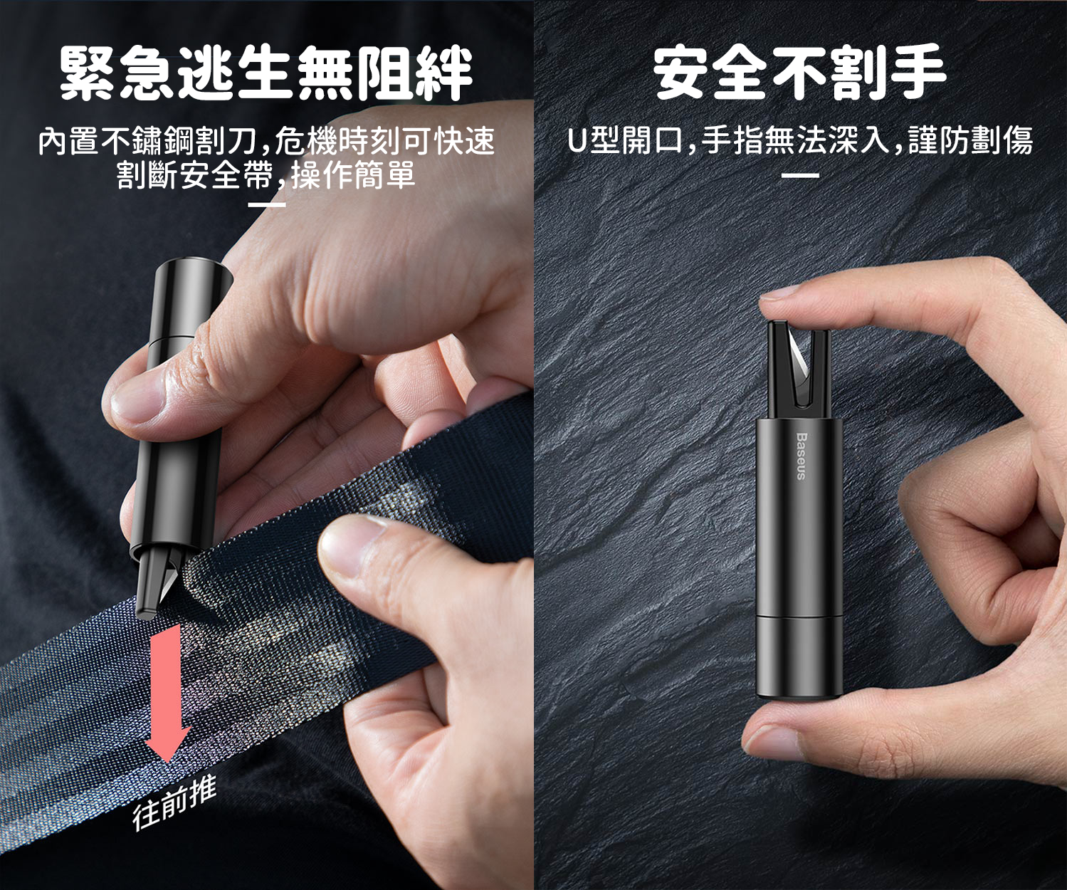 ✨內置不鏽鋼割刀,危機時刻可快速割斷安全帶,操作簡單安全不割手,
