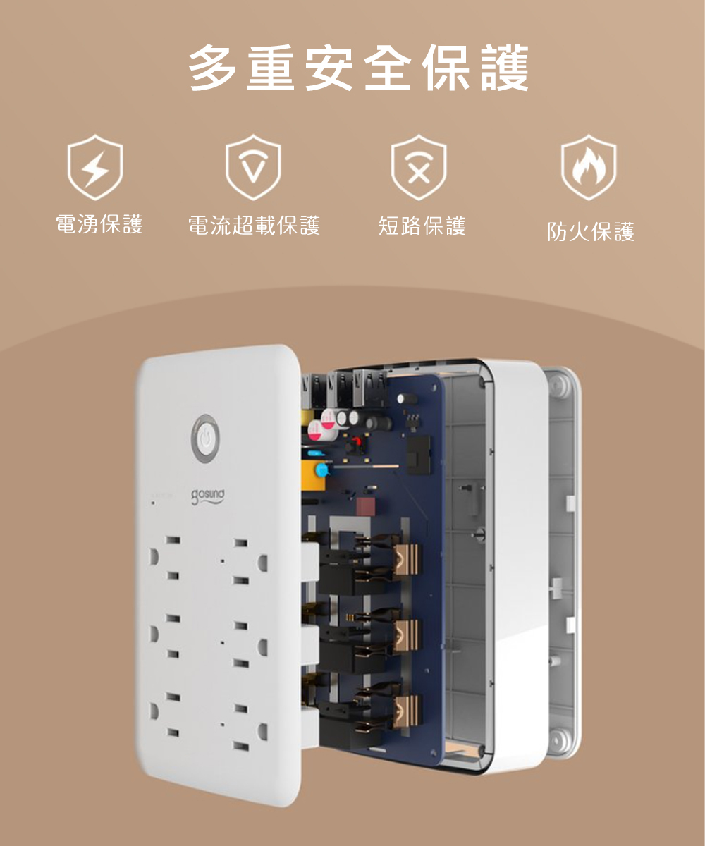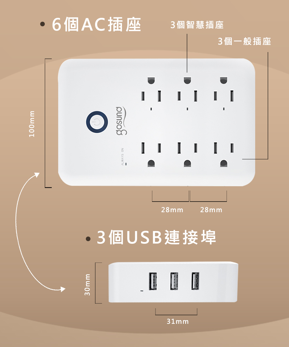 🌟3個智慧插孔(15A) 🌟3個一般插孔(15A) 🌟3個USB插孔(5V/3A)