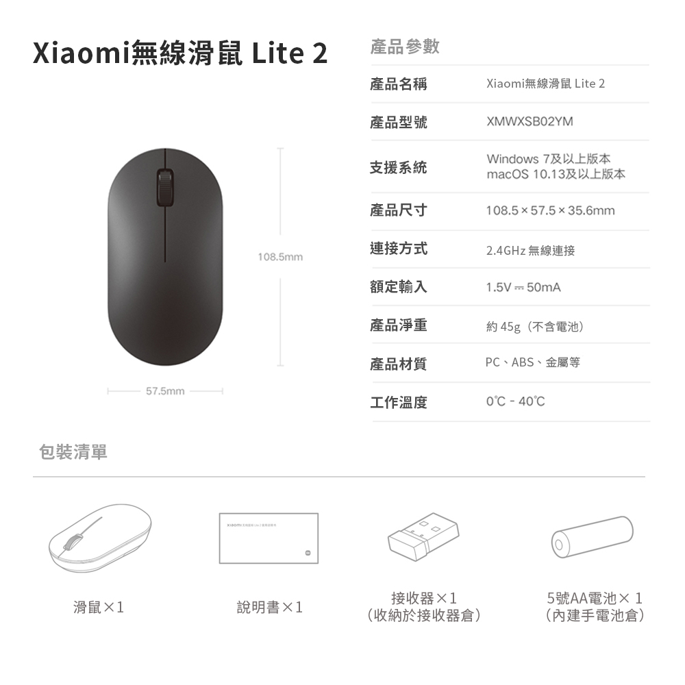 ✅產品名稱:Xiaomi無線滑鼠 Lite 2