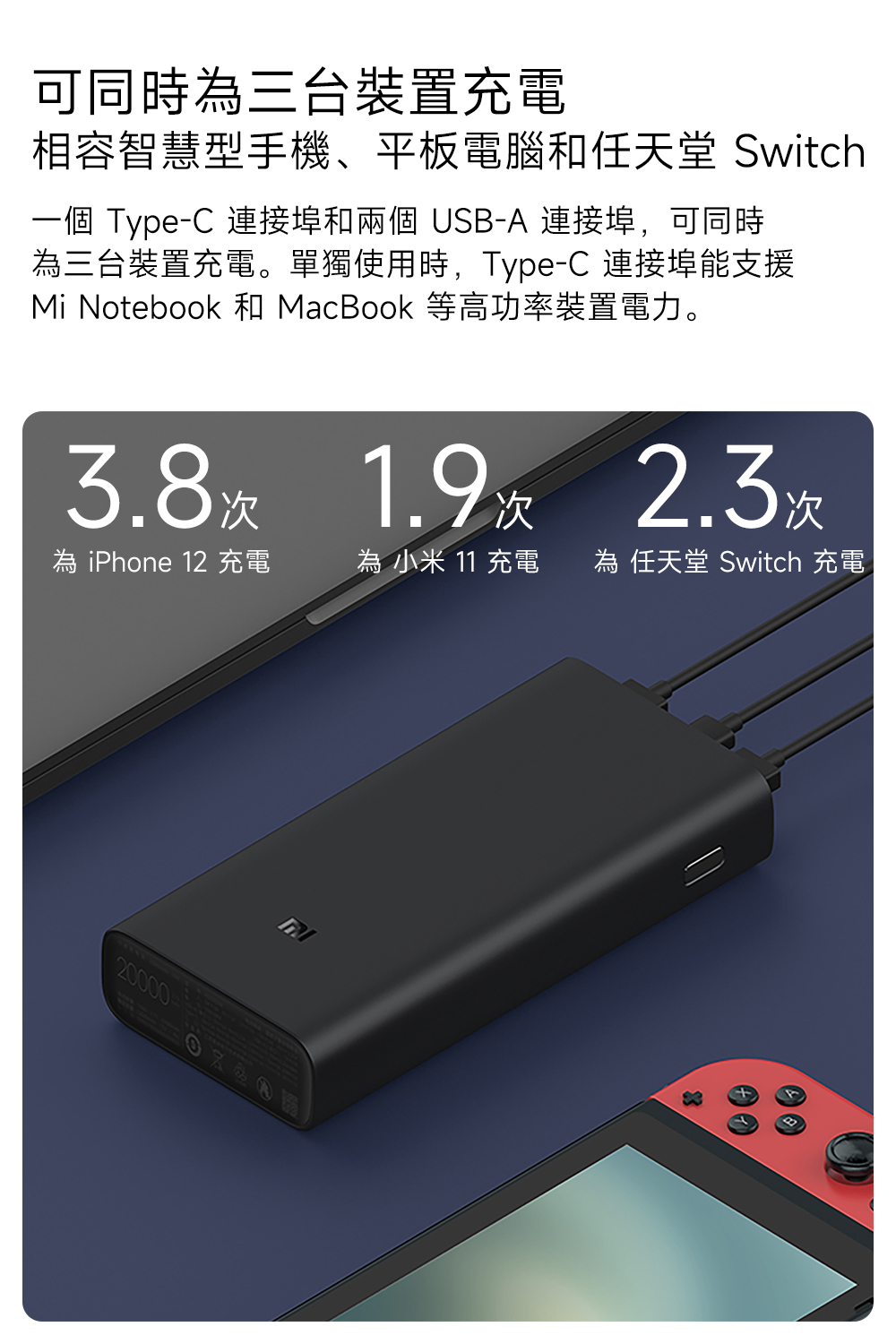 ✨可同時為三臺裝置充電,方便多設備使用