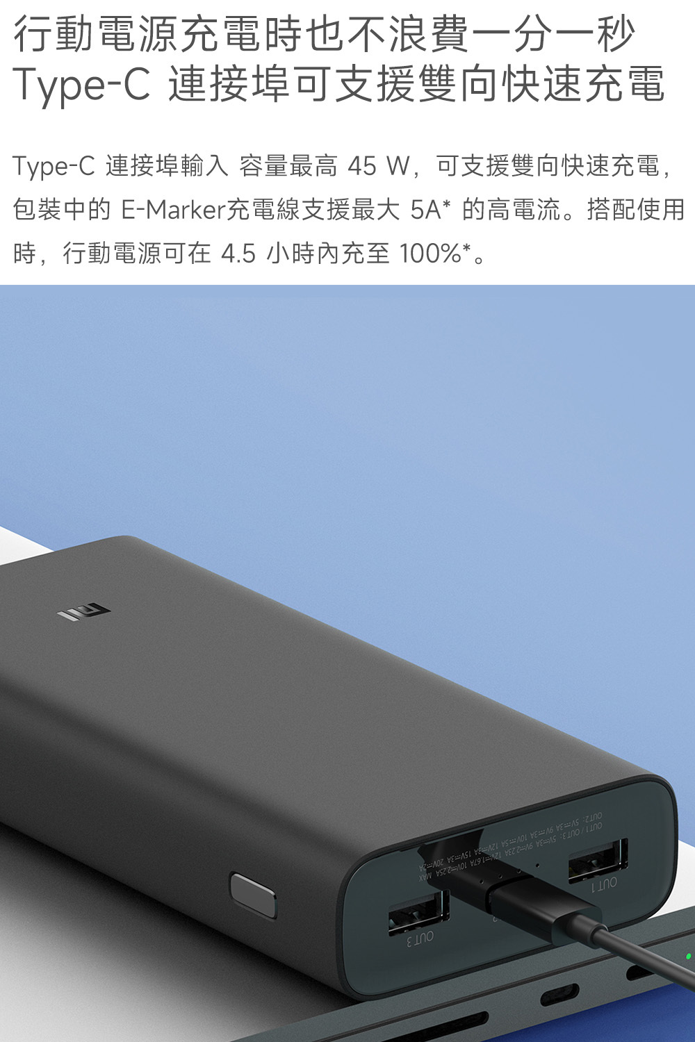 ✨4.5小時內即可充飽電,讓您隨時隨地保持充足電量