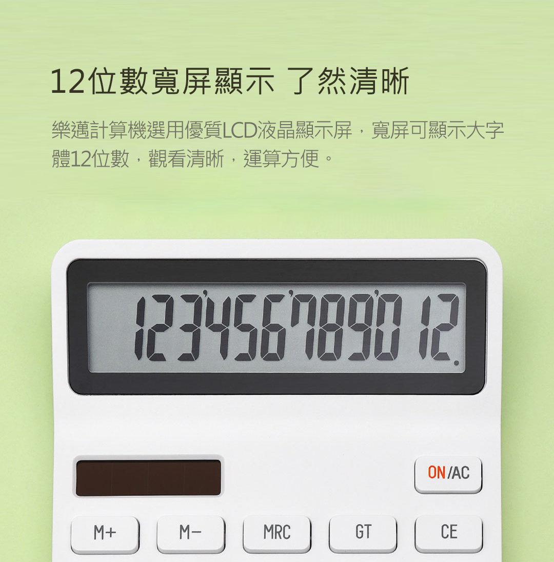 ✨選用優質LCD液晶顯示螢幕,寬屏可顯示大字體12位數,觀看清晰運算方便