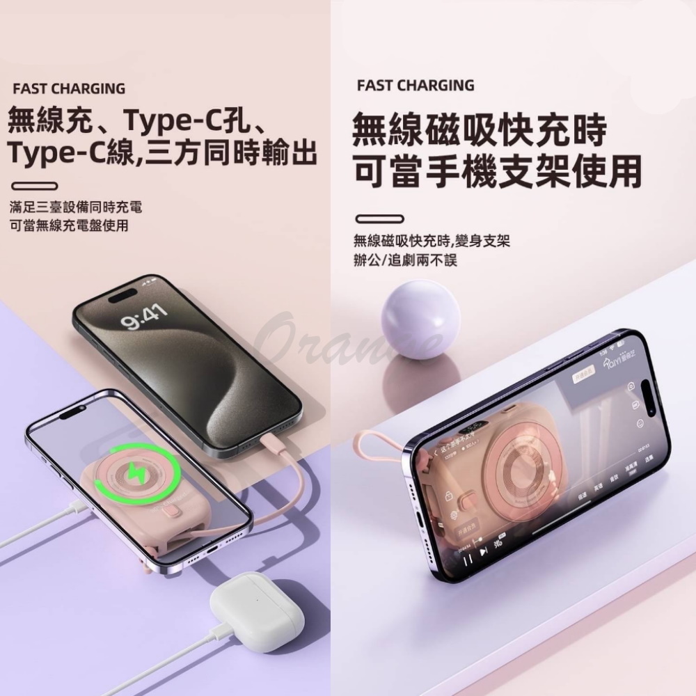 ✔ 無線磁吸快充、Type-C孔、Type-C線滿足三台設備同時充電