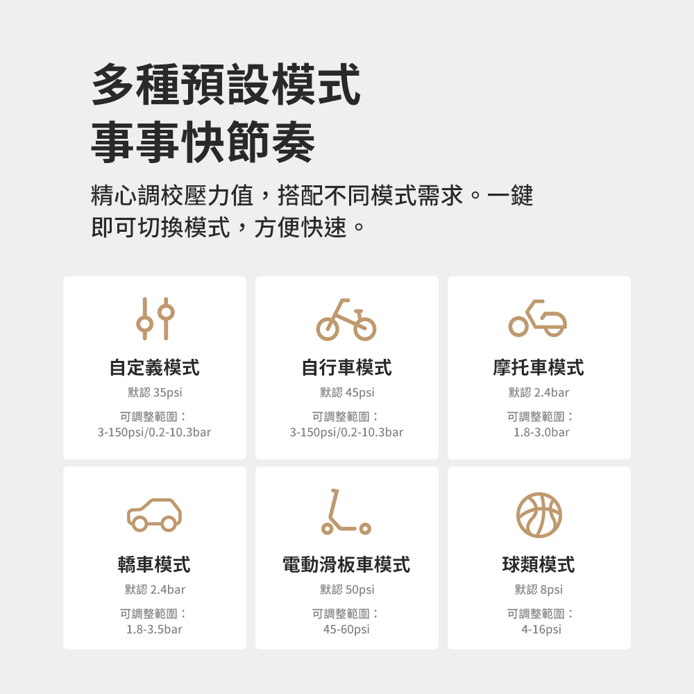 ✨多場景預設充氣模式,新手也能輕鬆操作