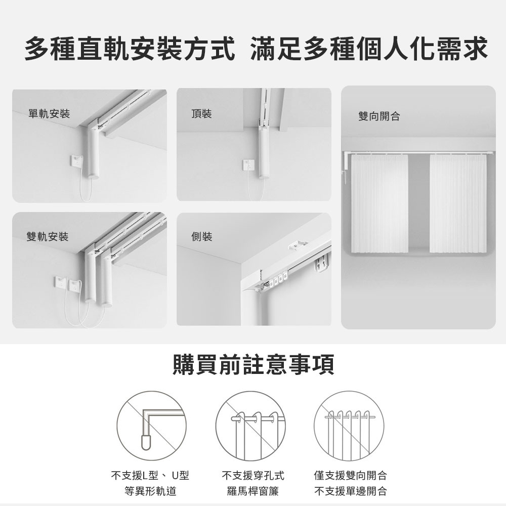 👉不支援L型、U型,等異形軌道