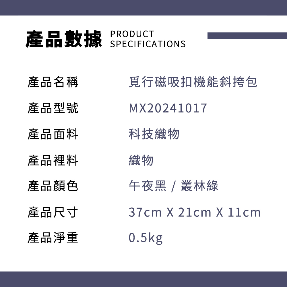 ✅產品名稱:覓行磁吸扣機能單堅斜跨包
